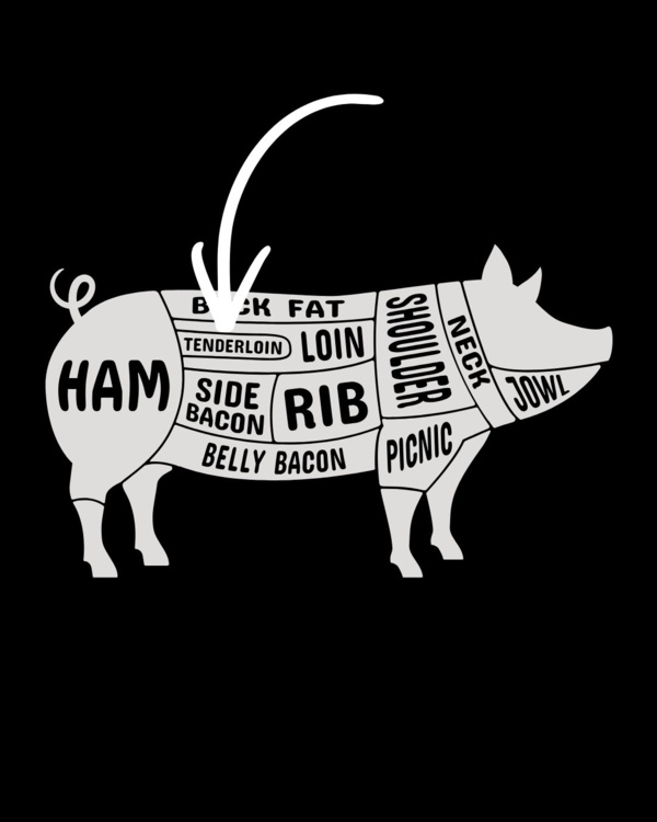 Der Filetkopf bildet den Übergang vom Rücken in den Schinken.